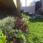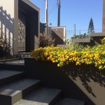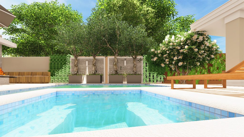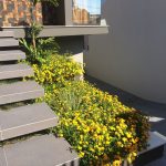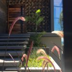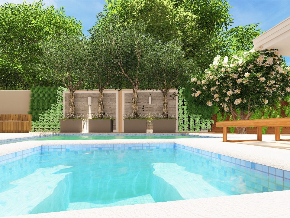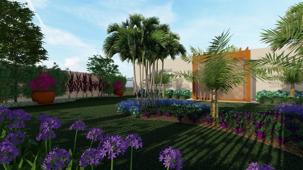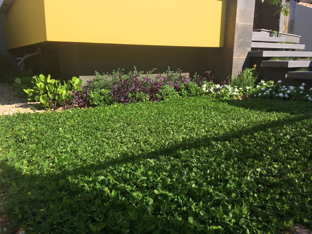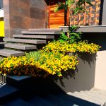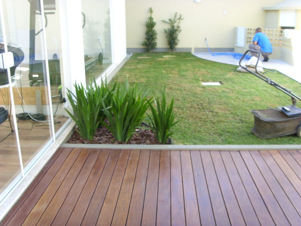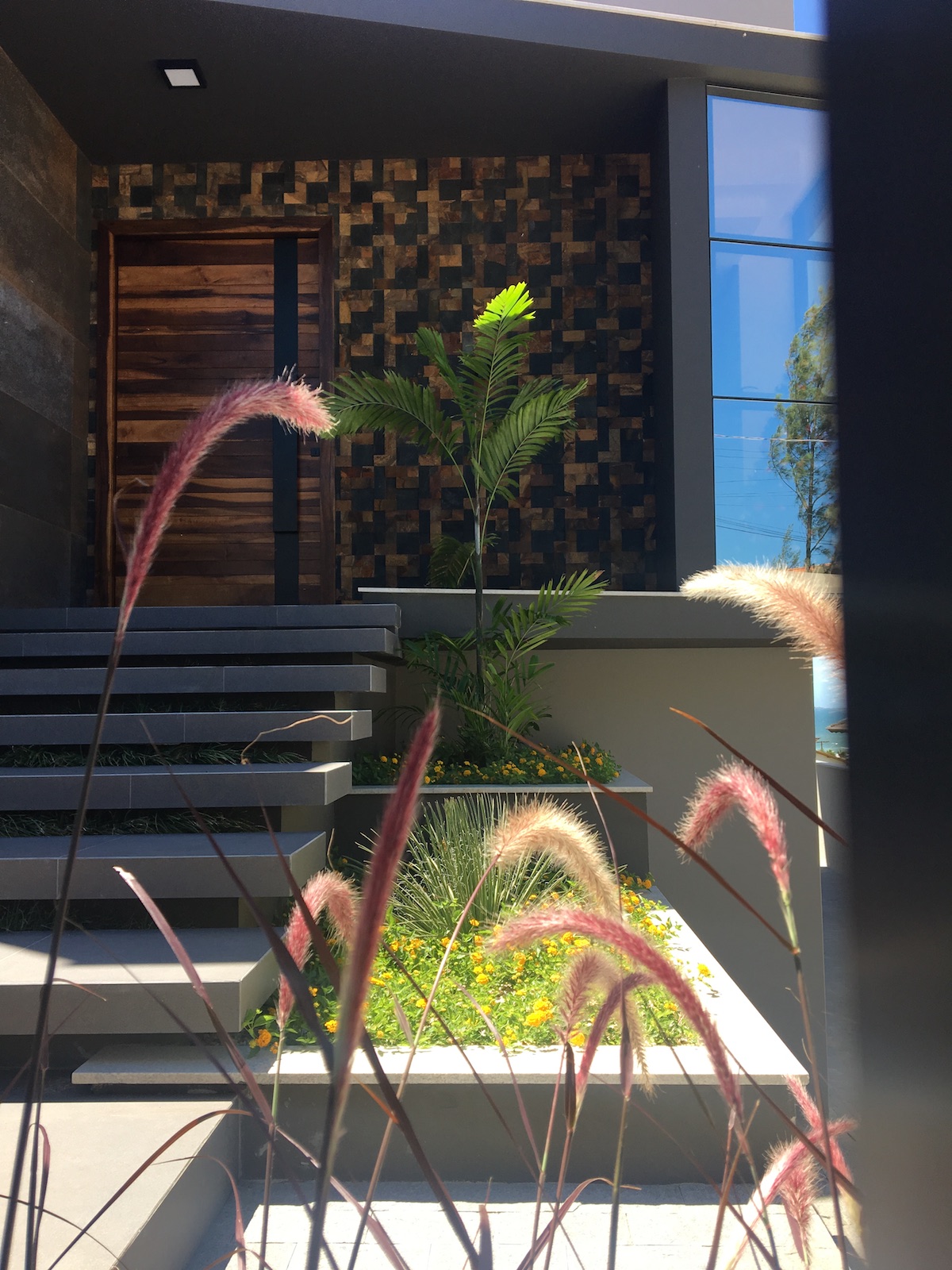 A arquitetura imponente precisava de um paisagismo que a contemplasse. Ao criarmos este projeto levamos em consideração o gosto do cliente pelo cultivo de flores. Escolhemos uma palmeira que valorizasse a fachada, com um caminho de dormentes rústicos e espécies que trouxessem suavidade. Além das flores, utilizamos espécies com tons de verdes diferentes, como a Bambusa textiles gracilis, Neomarica caerulea e a Pata de Elefante (Beaucarnea recurvara).